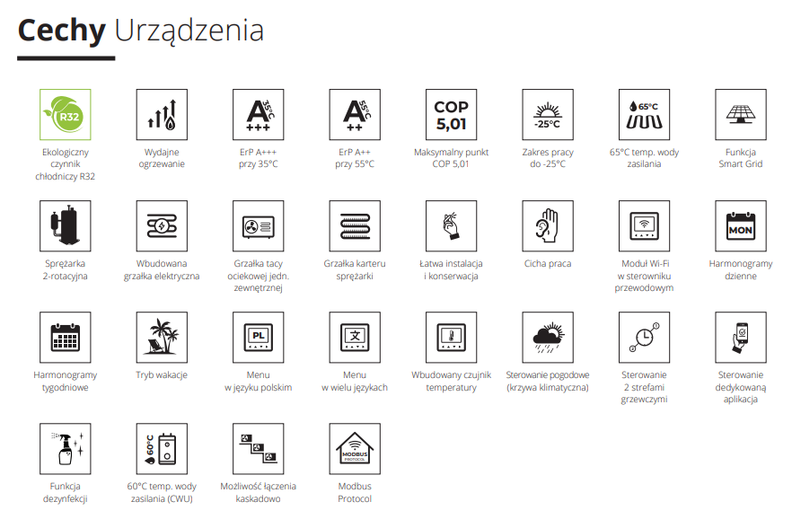 Pompa ciepła Rotenso Airmi Monoblock (Graphite) AIMB60X1 (jednostka zewnętrzna)o mocy 8 kW. Charakteryzuje się znakomitą klasą efektywności energetycznej A+++ (dla temp. zasilania 35°) i A++ (dla temp. zasilania 55°), COP: 4,5, Ekologiczny czynnik chłodniczy R32, Sprężarka 2-rotacyjna, Wbudowana grzałka elektryczna, 5 lat gwarancji