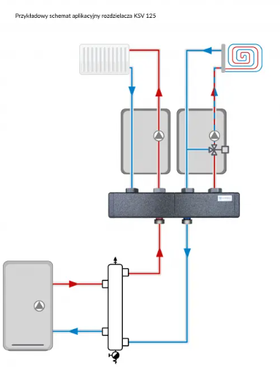 Afriso, Rozdzielacz KSV 125 - 2, do 70 kW dla 2 - obiegów do 70 kW, przeznaczony dla grup pompowych Primo Therm