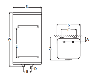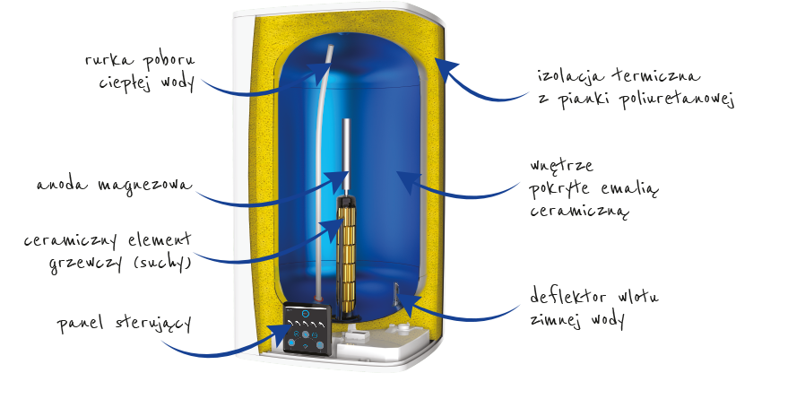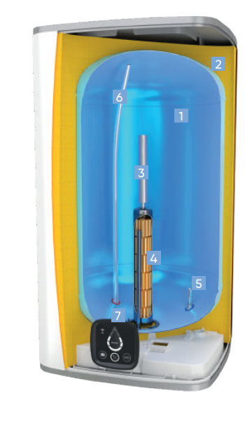 Pojemnościowy ogrzewacz wody, wersja wisząca, pojemność 150l, moc grzałki 2400W, 5 lat gwarancji, Wi-Fi, możliwość zarządzania pracą ogrzewacza przy użyciu smartfona lub tabletu z zainstalowaną aplikacją COZYTOUCH.