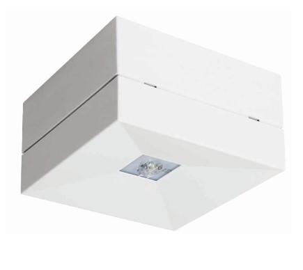 Awex LOVATO N LED oprawa ewakuacyjna o mocy 3W, z optyką do oświetlania korytarzy, oprawa w kolorze białym z poliwęglanu, montaż natynkowy do sufitu, awaryjna (na ciemno), autotest, oprawa autonomiczna – 220 – 240VAC 50/60Hz, IP41