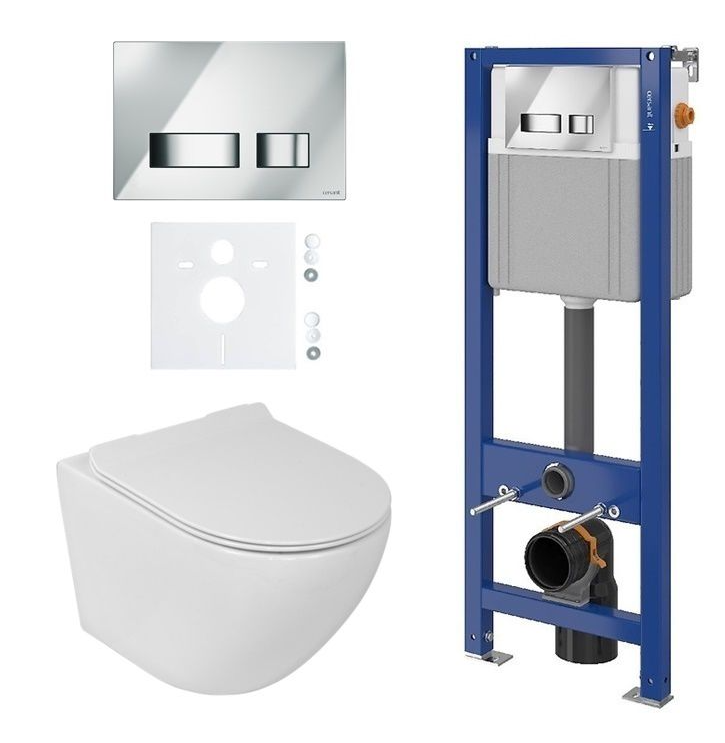 Cersanit Zestaw - stelaż podtynkowy do WC z przyciskiem MOVI (chrom), miska LAVITA RIM+ SOFI SLIM z deską sedesową wolonoopadającą białą kod S020