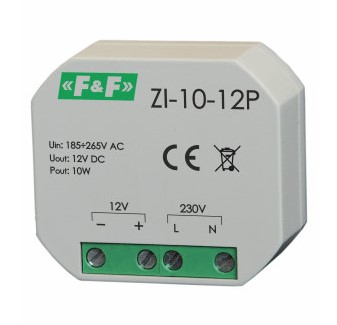 F&F ZI-10-12P Zasilacz impulsowy do montażu w puszce podtynkowej, Napięcie wyjściowe 12 V, Moc 10 W, przeznaczony jest do zasilania niskonapięciowych lamp LED.