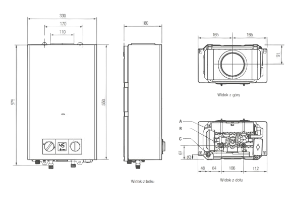 Gazowy przepływowy podgrzewacz wody z otwartą komorą spalania, zasilany gazem LPG (model bez wyświetlacza)