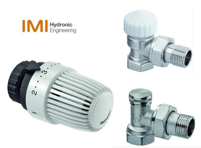 IMI Hydronic Głowica term. S + Zawór Calypso exact + zawór odcinający Raditec DN15 kątowy