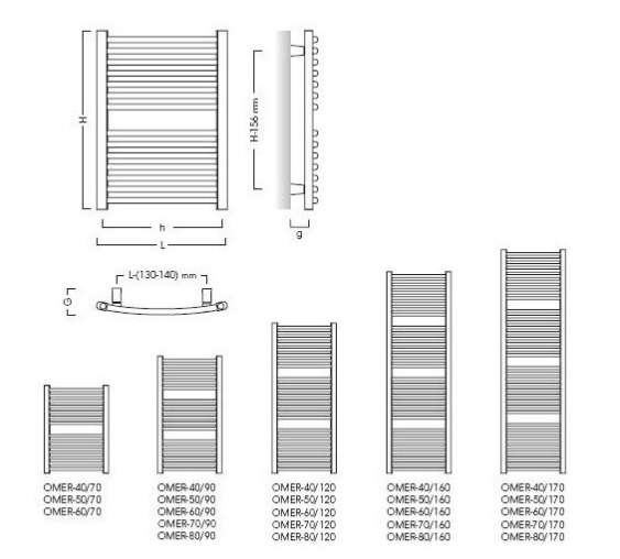 Instal-projekt OMEGA R 40/120 Grzejnik łazienkowy z podłączeniem dolnym, biały kod OMER-40/120