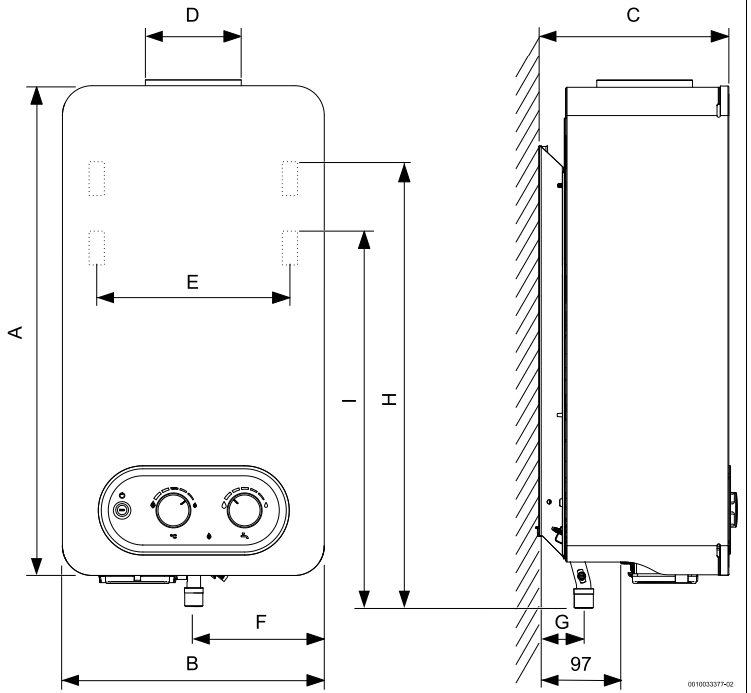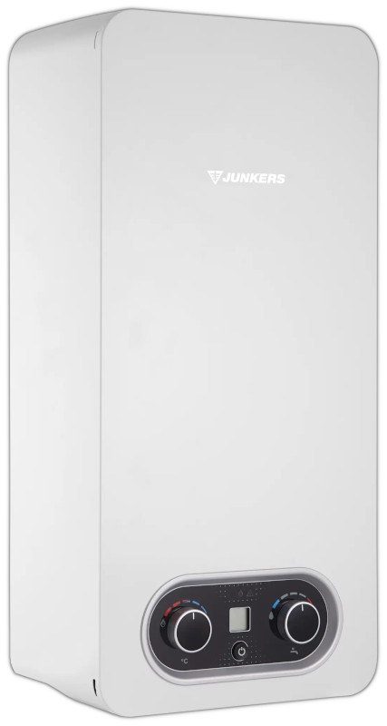 Junkers HYDRO 4200 WRD 11-4KB, Gazowy przepływowy podgrzewacz wody z wyświetlaczem oraz otwartą komorą spalania o mocy 19,2kW, Automatyczny zapłon bateryjny – nie ma konieczności zapalania ręcznego