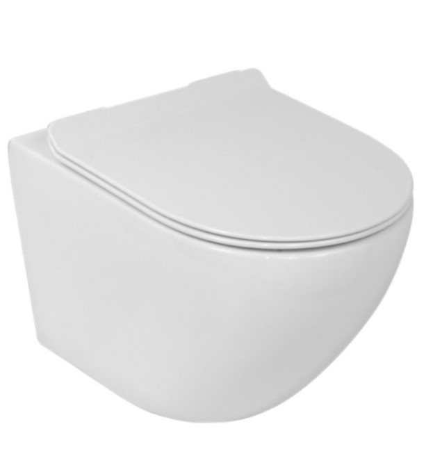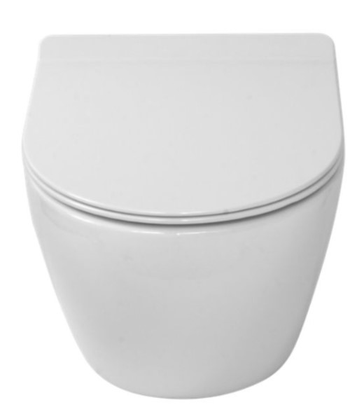 Bezrantowa miska wisząca WC LAVITA RIM+ SOFI SLIM w kolorze białym z deską sedesową duroplast (wolnoopadająca)