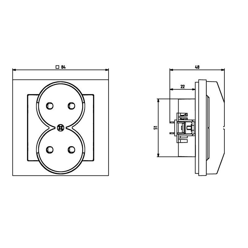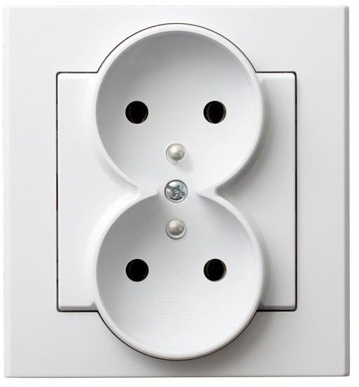 Gniazdko podwójne, z uziemieniem, w zestawie z ramką, białe.