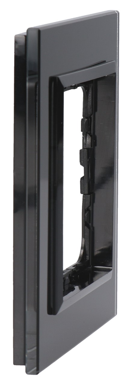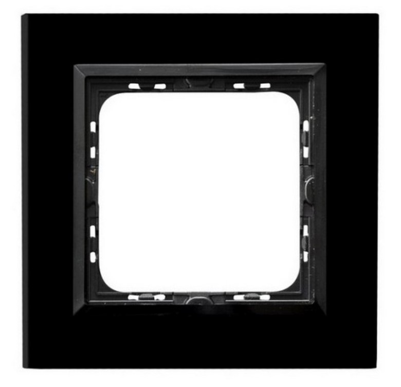 Seria SONATA, Ramka pojedyncza, Montaż uniwersalny, Szkło+PC grubość 4 mm, Kolor czarne szkło, IP20