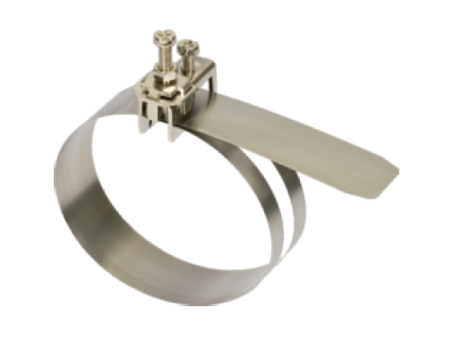 Opaska uziemiająca, wkręt M6, przyłączalność znamionowa: 1,5 – 16mm2, Zakres średnic rur: 60 – 120mm (2″…4″).