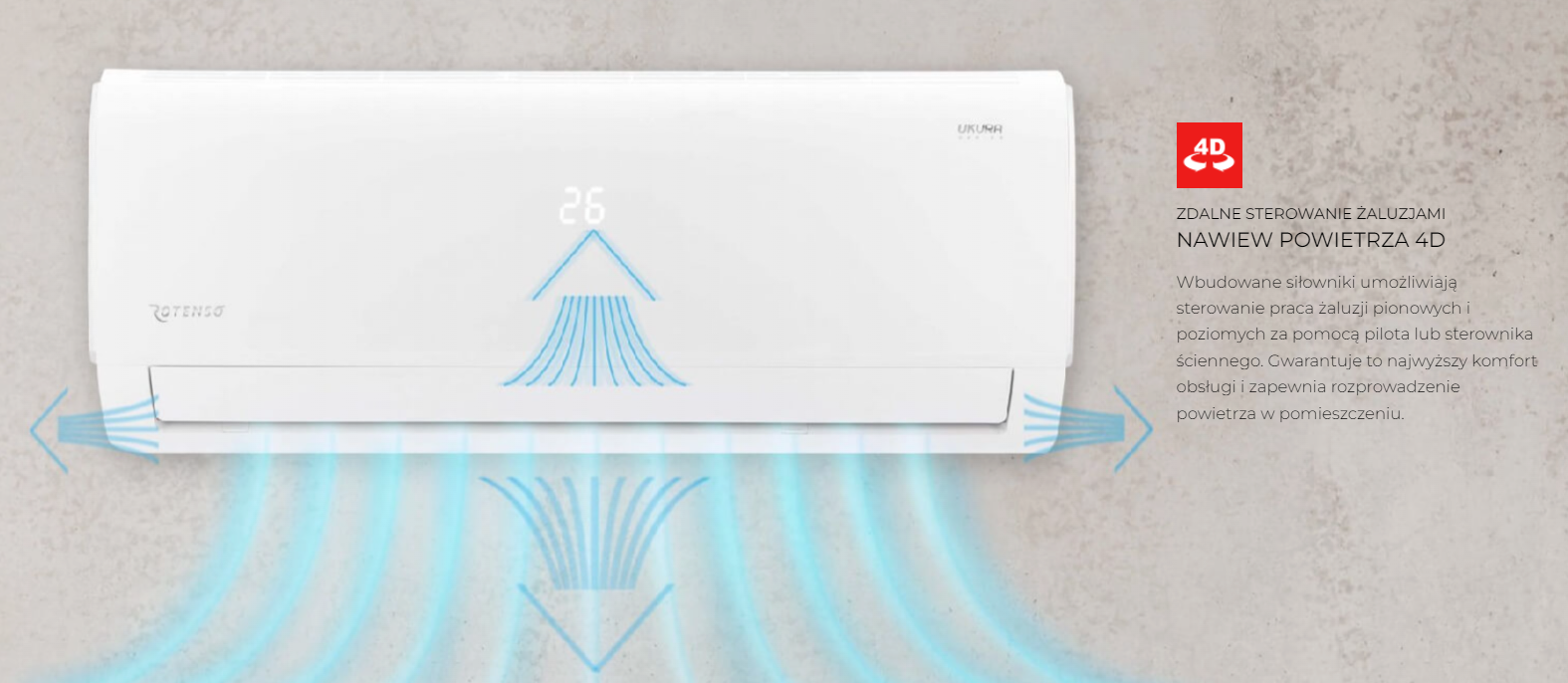 Rotenso Ukura / Ukura H U35Xi Klimatyzator pokojowy o mocy 3,5kW (jednostka wewnętrzna), Wi-Fi Kod U35Xi