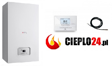 Saunier Duval Pakiet Kocioł gazowy Thelia Condens AS 25 + sensor automatyki pogodowej + regulator EXACONTROL E7C + czujnik NTC temperatury zasobnika