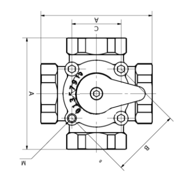 Kod produktu: 602009Womix, Zawór mieszający 4 - drogowy, MIX M 4-50 , kvs 44, rozmiar 2 cale, mosiężny, gwintowany